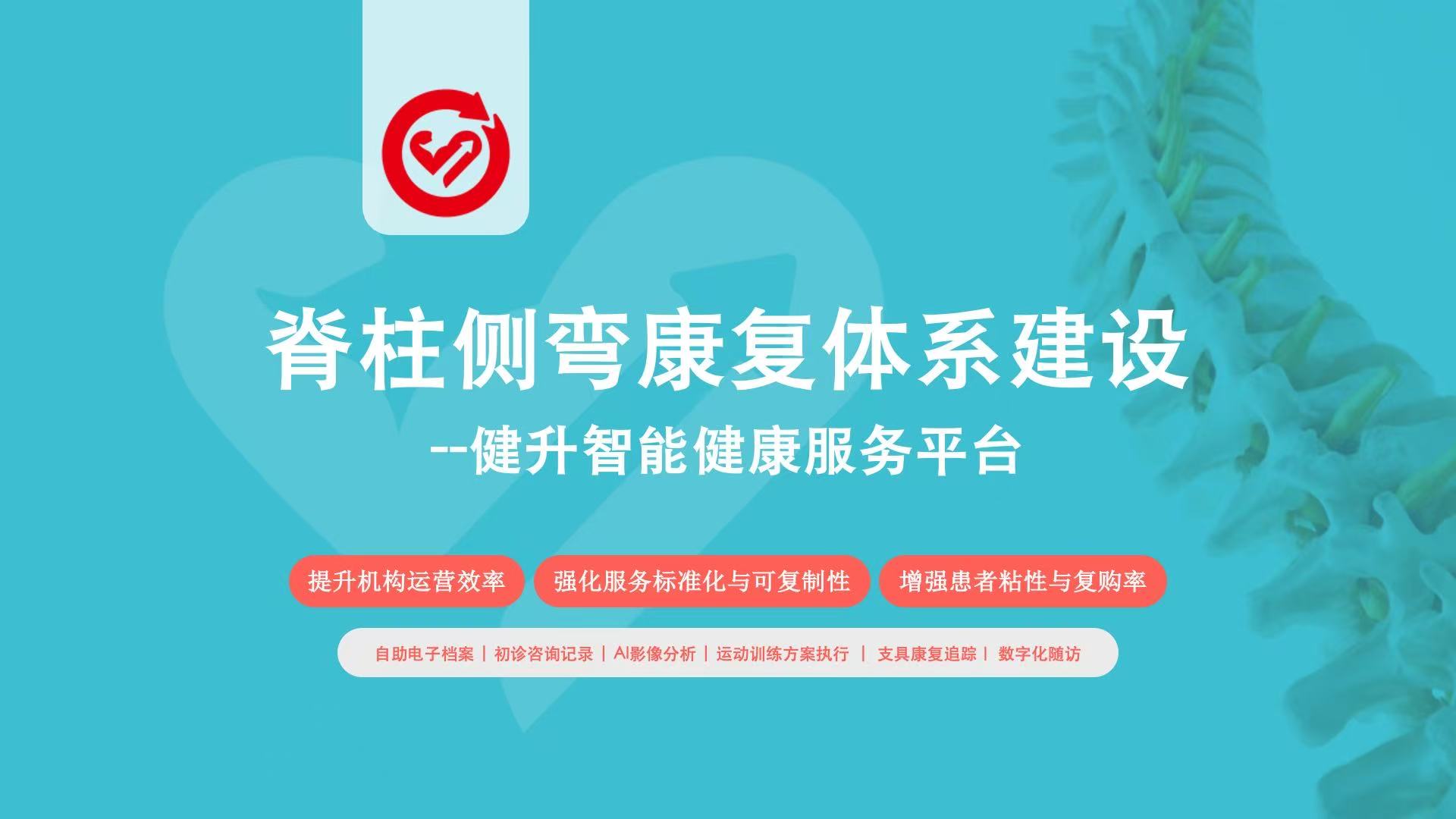 健升智能健康服务平台基于国家儿童青少年健康战略需求,聚焦脊柱侧弯防控全周期管理,结合医学评估、人工智能、云平台、物联网设备、远程康复等技术手段,构建“筛查—诊断—训练—支具—随访—复查”的六环节一体化闭环体系,实现了技术可控、流程可溯、数据可视、干预可评的新一代智慧康复服务模式。